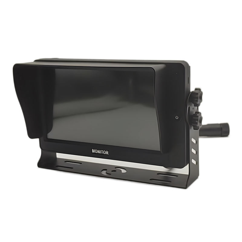 Câmera de visão traseira com detecção de ponto cego AI e alarme de luz integradoLíder do carro Monitor de veículo reverso com entradas 2CH AHD de 7 polegadas com botão único, um monitor AHD de alto desempenho, proporção de aspecto 16: 9 e resolução de 1024 x 600, oferece uma visão clara para o motorista. Entradas de sinal AHD de 2 canais com fios de disparo de 2 canais.