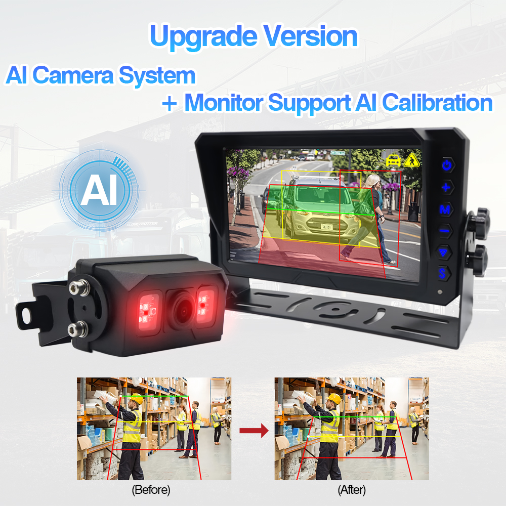 Luz de advertência de mudança de cor embutida do sistema de câmera de detecção de ponto cego AICarleader recém-lançada câmera de visão traseira com detecção de ponto cego AI Luz de advertência de mudança de cor integrada, câmera com luz de advertência integrada e função de alarme, pode funcionar com monitor AHD normal. Se você precisar de configuração de calibração de IA, sugira usar nosso monitor de IA para ajustar o tamanho da zona de detecção da câmera e outras funções de IA.