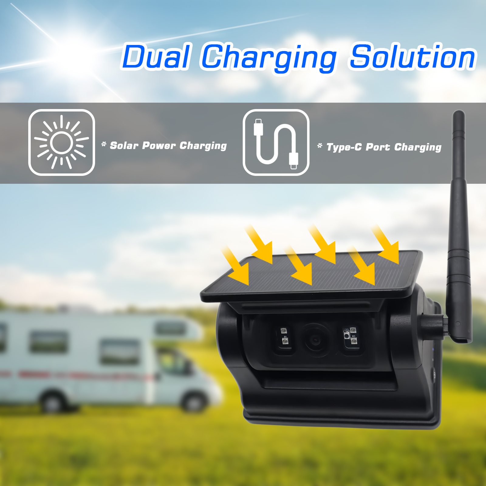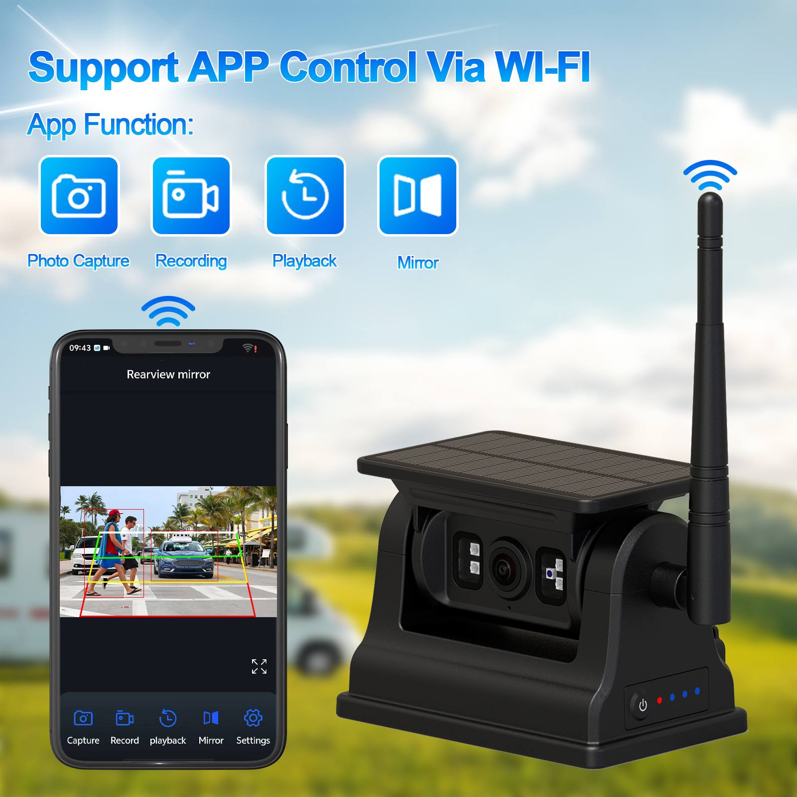 9 multimédios de CarPlay do apoio do monitor do veículo da polegada IPS 2AV AHDLíder de carro Câmera wifi reversa recarregável movida a energia solar com base magnética, sem necessidade de fiação, fácil instalação com base magnética, câmera reversa sem fio alimentada por energia solar, bateria recarregável de 10500mAh de grande capacidade integrada e tem função de visão noturna, também pode ser alimentada por energia solar, economia de energia e proteção ambiental. Função de detecção de IA com suporte para câmera, pode detectar pedestres e veículos, também ssuporte para conexão com celular via WIFI, permite ao usuário capturar imagens, gravar vídeo e reproduzir, também ajustar a calibração de IA, etc. Esta câmera é sua melhor opção em equipamento de monitoramento de segurança veicular para dirigir seu veículo com segurança.