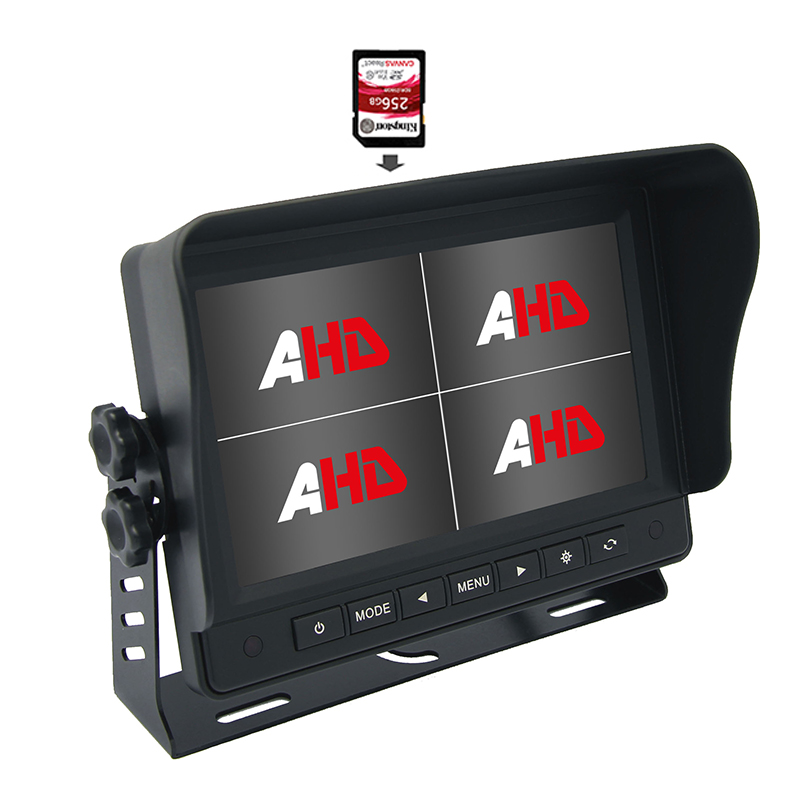 Monitores Quad AHD: Nossos monitores Quad AHD levam a segurança do veículo para o próximo nível. Capazes de exibir e gravar quatro feeds de vídeo simultaneamente, esses sistemas oferecem uma visão surround completa. Com modos de exibição multicanais e arquivamento independente de arquivos, os motoristas podem monitorar a parte traseira/dianteira/lateral de seu veículo com facilidade.