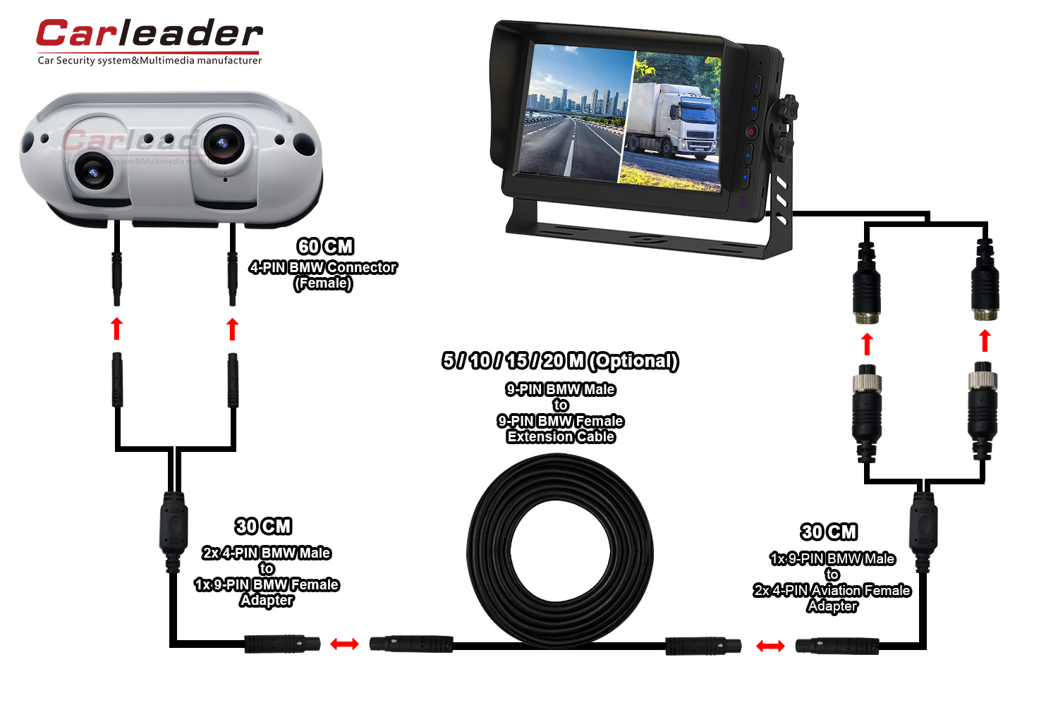 Líder do carrooferecerá duas soluções de fiação diferentes para câmera de visão traseira pesada de lente dupla AHD Starlight, para atender a diferentes necessidades de fiação: