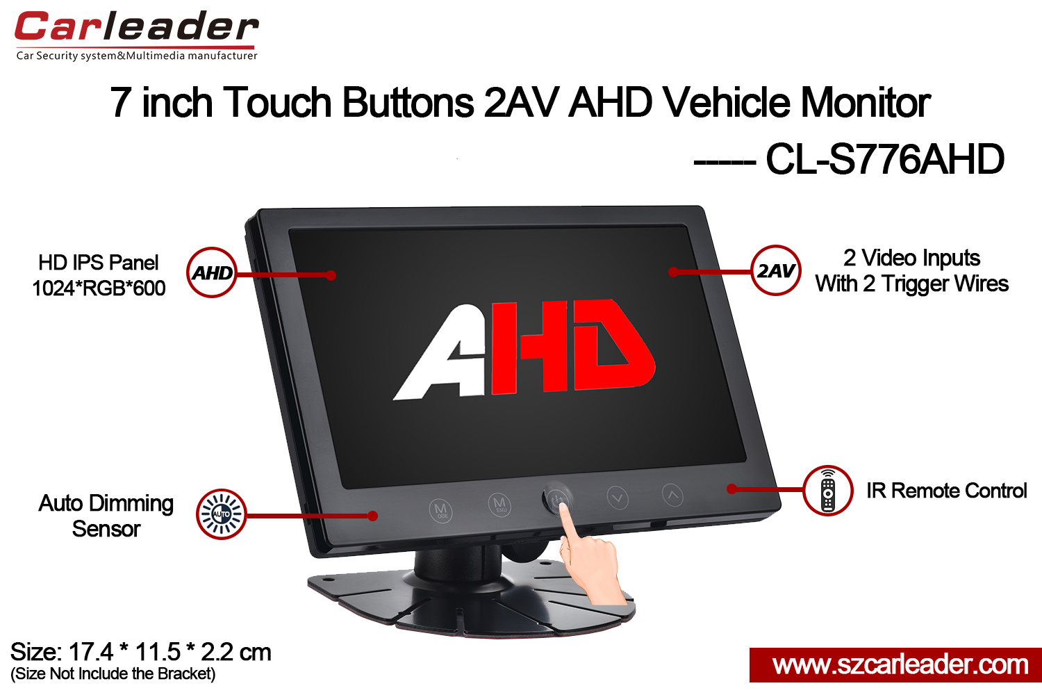 Líder do carroMonitor de veículo pesado com botões de toque de entrada 2CH AHD da tela IPS de 7 polegadasideal para uso automotivo, de segurança, marítimo e industrial,combina durabilidade, flexibilidade e desempenho de exibição de alta qualidade em um pacote confiável.