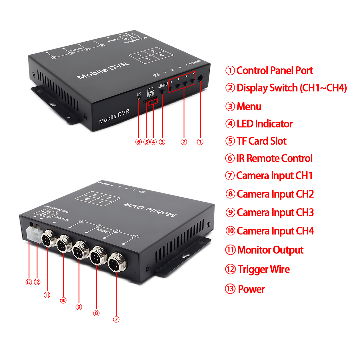 Carleader Quad Video Splitter Box combina a conveniência de uma caixa divisora de vídeo 4CH com a segurança da função de gravação DVR. Seu conjunto abrangente de recursos, incluindo configuração de imagem separada, modos de disparo flexíveis (fio de disparo e controle remoto), ajuste de borda da tela, ampla entrada de tensão e proteção robusta – fornece uma solução de vigilância confiável e de alta qualidade, adaptada para o exigente ambiente móvel. Garanta conhecimento situacional completo e evidências de vídeo seguras com processador de vídeo Carleader 1080P AHD Quad Split Display com suporte para gravação de vídeo.